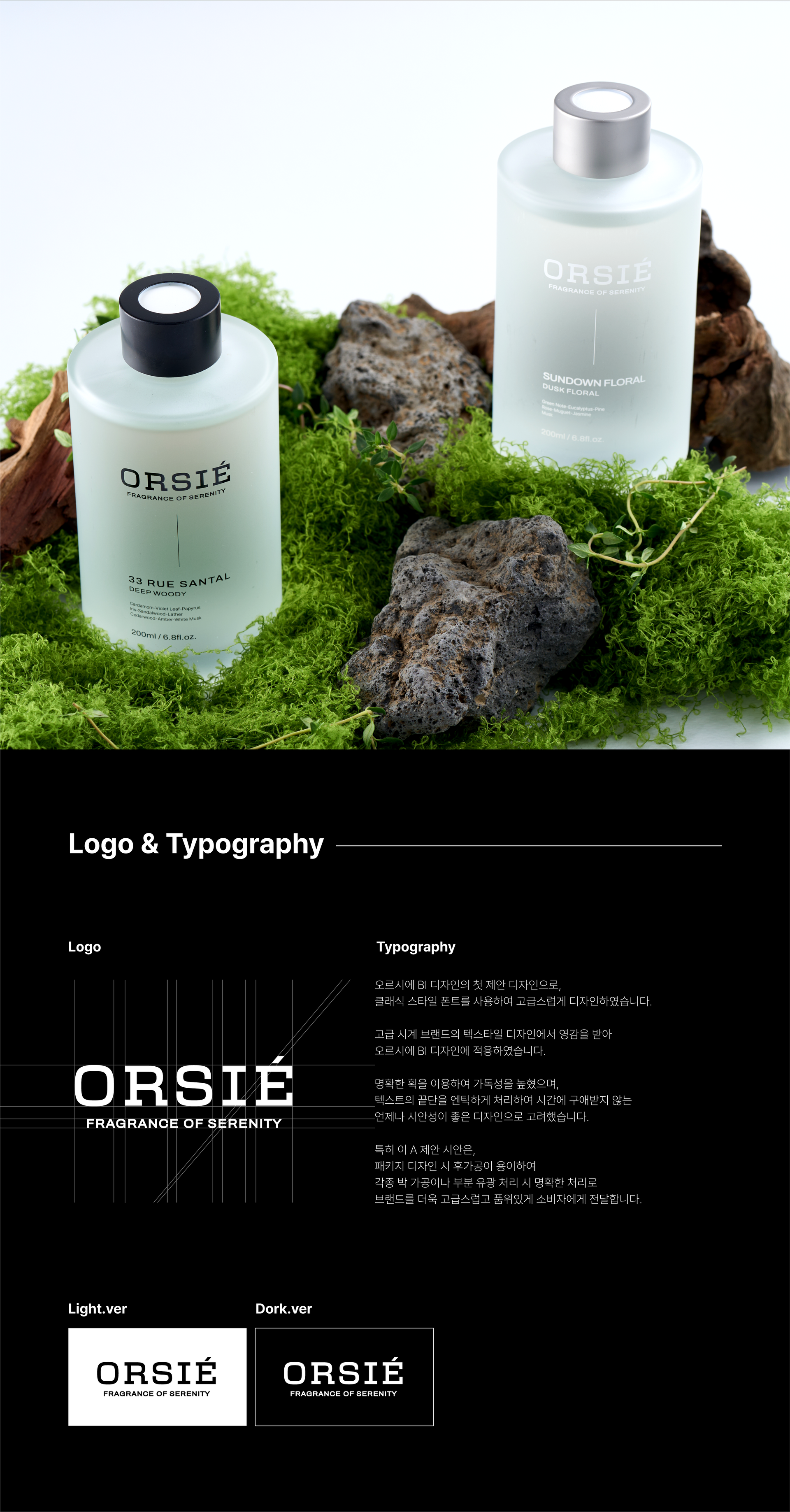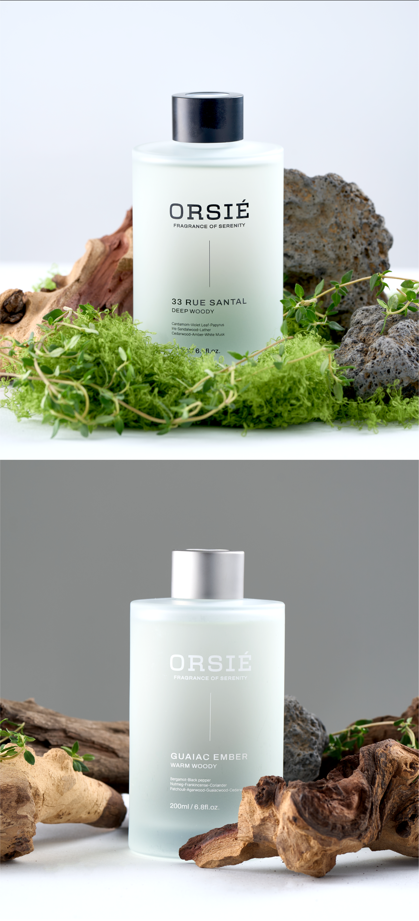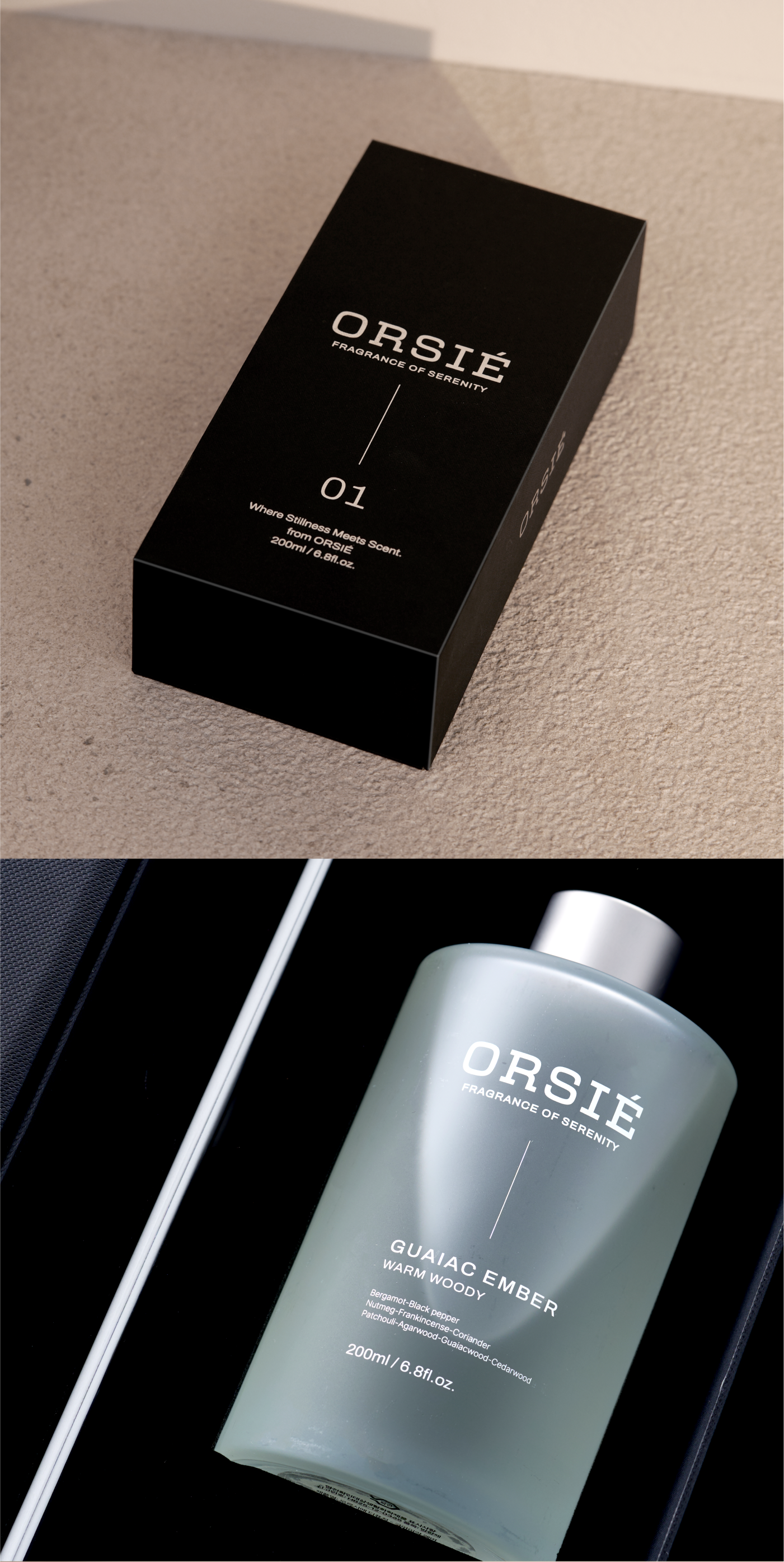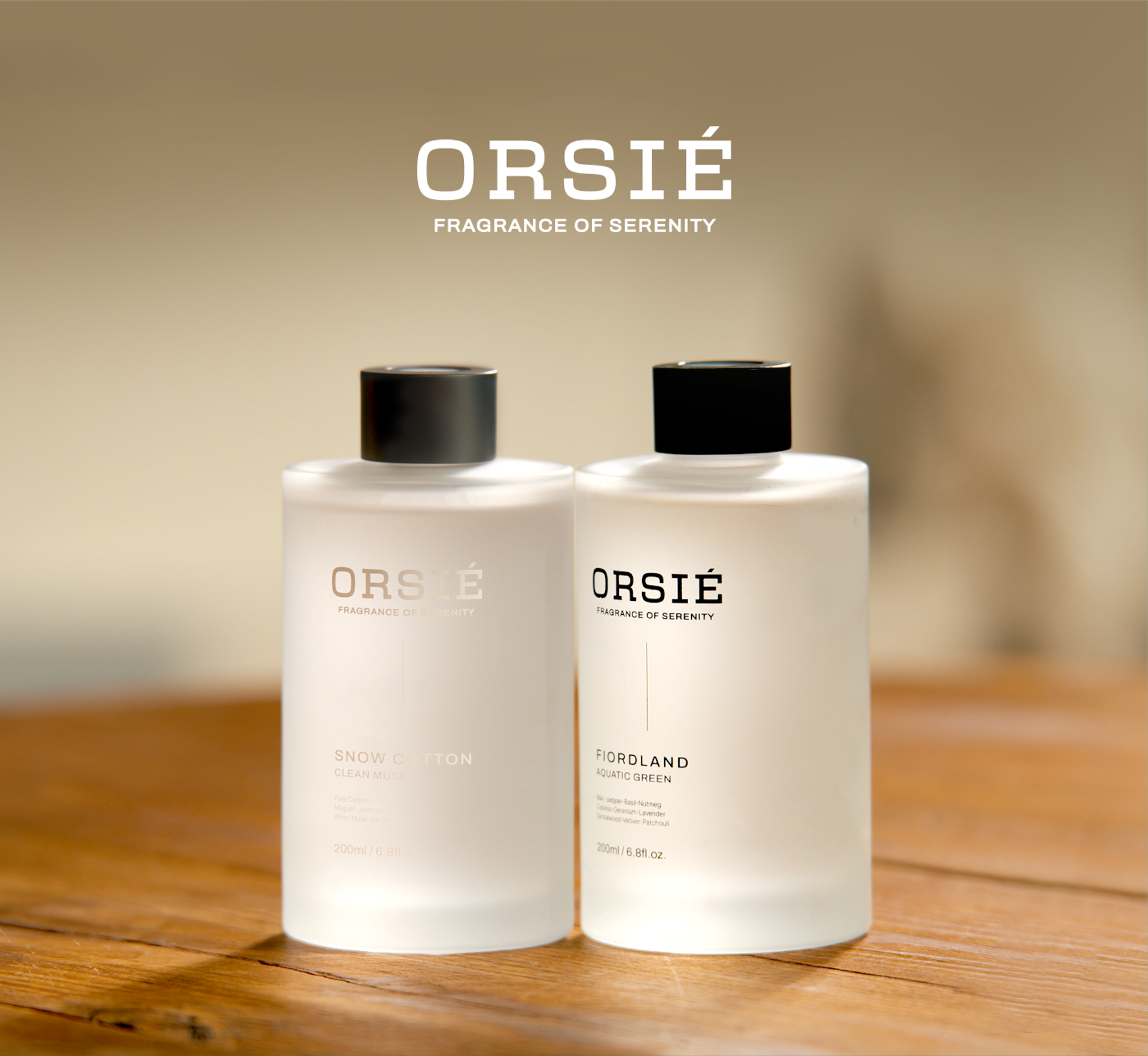 ORSIÉ is a portmanteau of OR (gold) and SIEL (sky), visually expressing the ‘comfortable feeling experienced when gazing at a golden sunset’. ORSIÉ's core value is to convey a warm and stable atmosphere through its diffusers, much like the moment at the end of the day when the sunset paints the space.