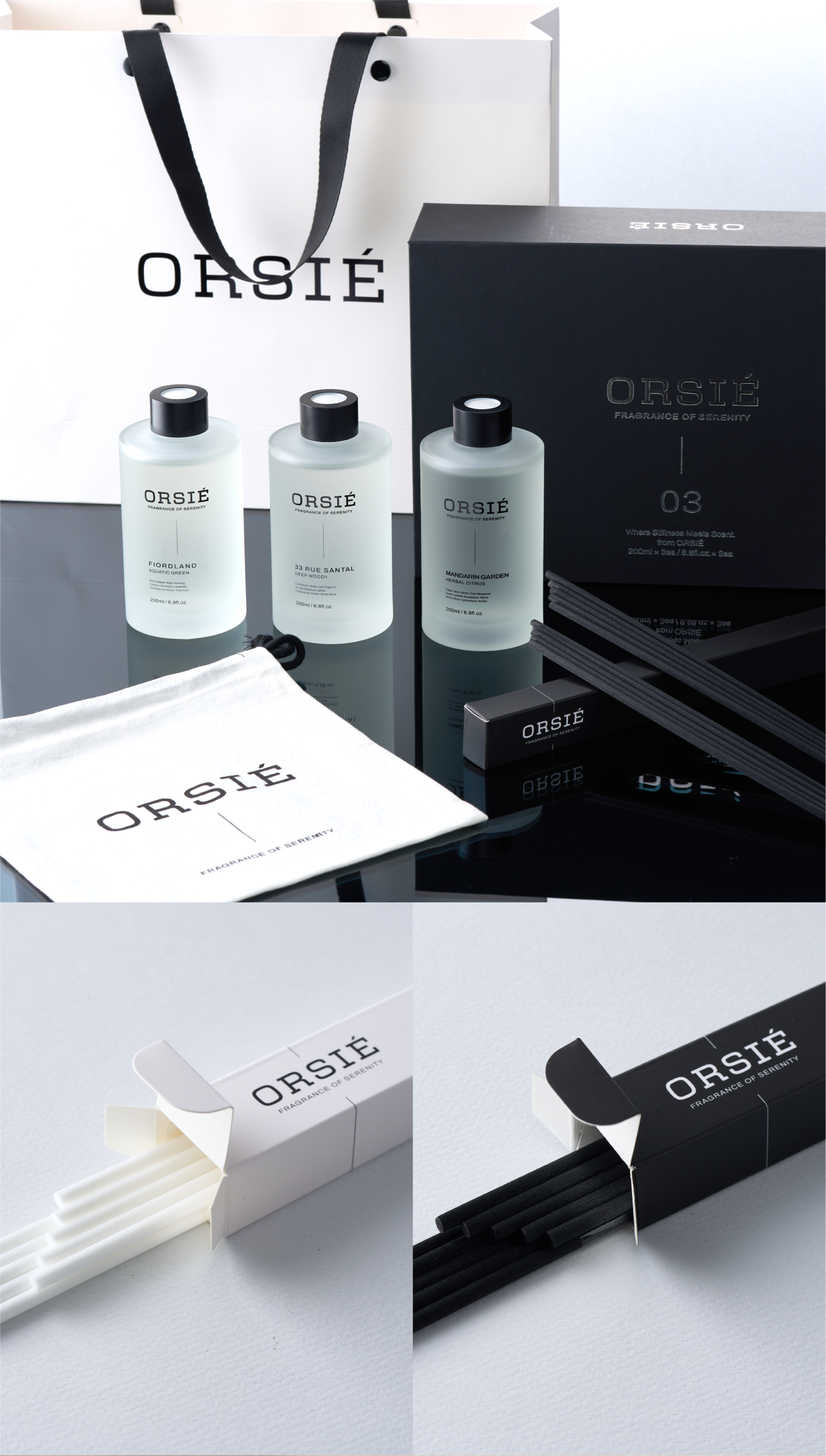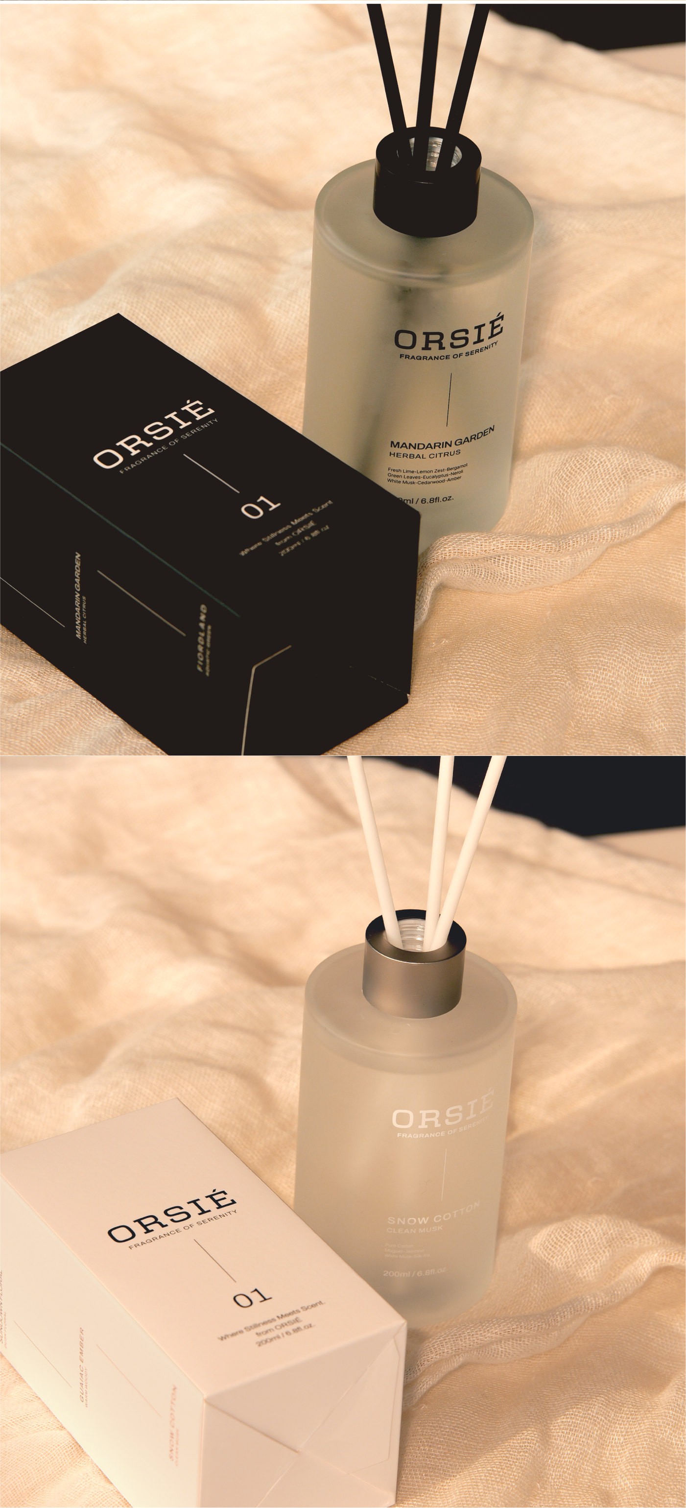 We developed the brand identity (BI) and package design for the premium diffuser brand ORSIÉ.